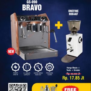 PAKET MESIN GUSTINO – BRAVO GS – 090 + GRINDER ONEFINE N964KF (MINI CAFE)