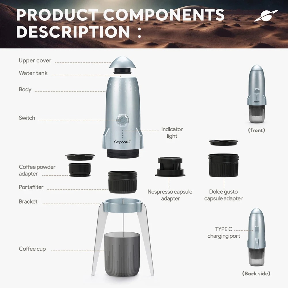 Dapatkan Capadeli Nanopresso Coffee Maker Portable 3in1 7800mAh 19 Bar iCafilas- ME2409 – Gray di Toko Online Kami di Bawah ini :