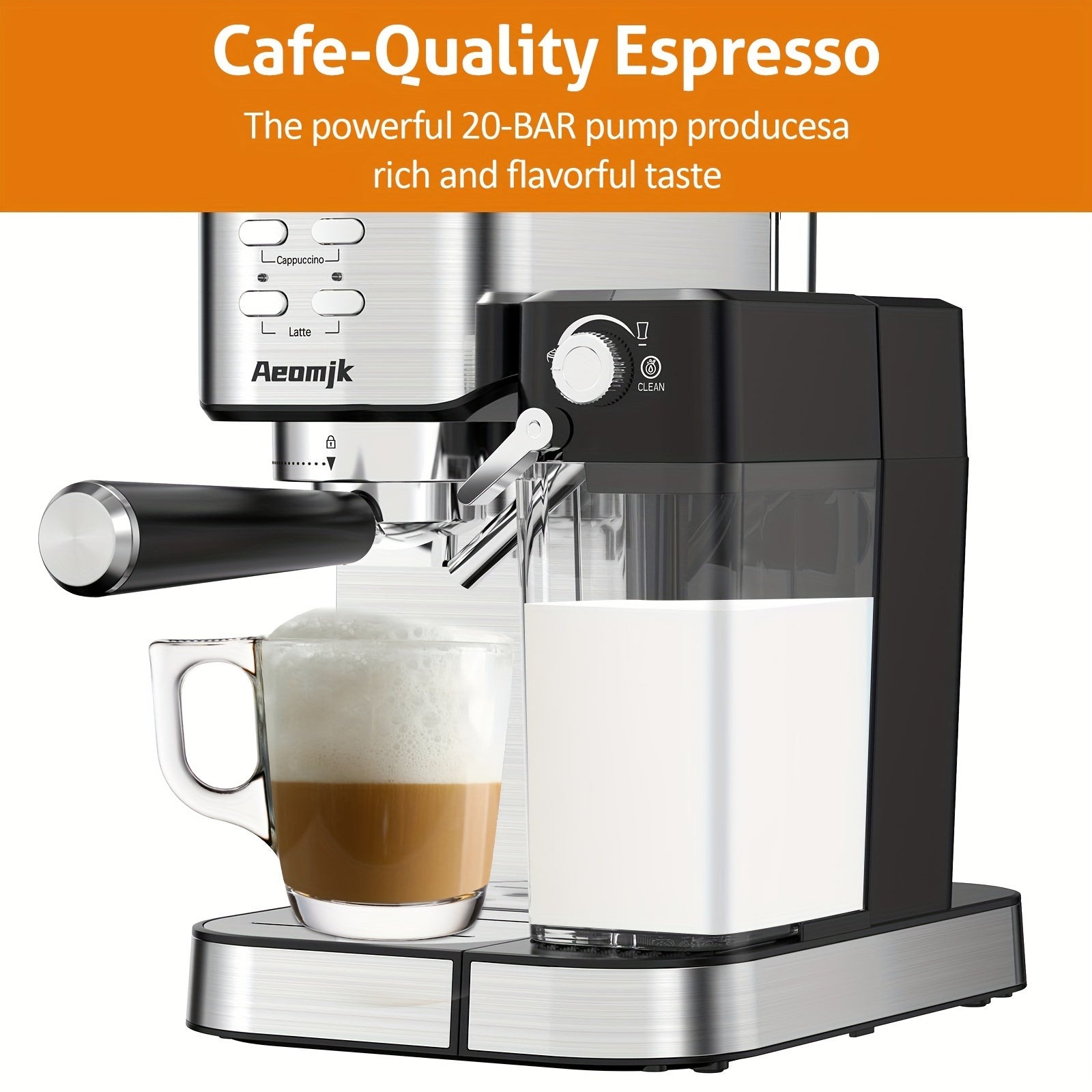 Dapatkan Coffee Maker Milk Frother 20 Bar 1350W 1L Aeomjk – CM5180 – Silver di Toko Online Kami di Bawah ini :