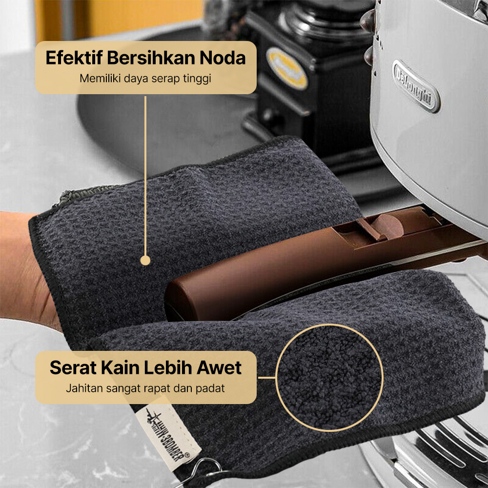 Jaga counter bar dan peralatan kopi supaya tetap bersih menggunakan kain lap barista dari MHW-3BOMBER. Lap yang juga disebut waffle cloth ini memiliki daya serap yang tinggi. Kombinasi tekstur dan bahan kainnya mampu menghilangkan noda dalam sekali usap. Makin efisien dengan kehadiran gantungan di bagian ujungnya. Cocok digunakan untuk keperluan kafe dan rumah tangga.