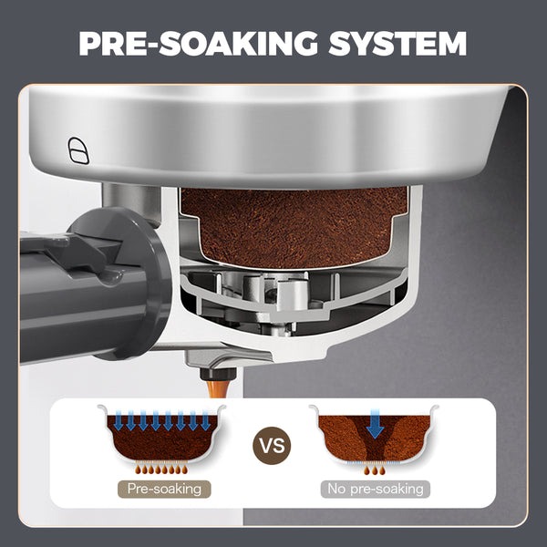 Mesin kopi dilengkapi dengan fitur pre-soaking memungkinkan kopi untuk meresap air secara merata sebelum proses ekstraksi dimulai. Hal ini dapat meningkatkan ekstraksi yang lebih baik dan merata dari biji kopi, menghasilkan kopi yang lebih kaya dan kompleks dalam rasa dan aroma.