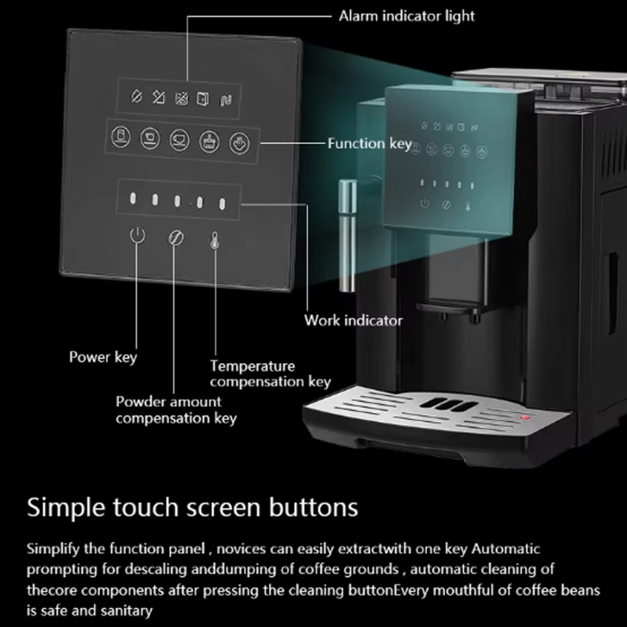 Anda bisa menggunakan mesin kopi dengan mudah, cepat, dan efisien karena mesin kopi espresso dilengkapi dengan tombol intuitif. Mesin kopi espresso memiliki tombol touch screen yang lengkap dengan label dan icon untuk memudahkan penggunaannya. Fitur ini membuat mesin kopi lebih mudah digunakan bahkan untuk pemula. |