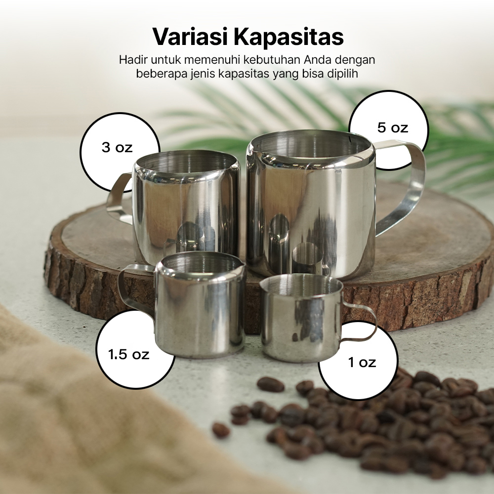 Membuat seni latte art tentu tidak bisa menggunakan sembarang gelas. Oleh karena itu, Anda membutuhkan gelas dari One Two Cups yang dirancang khusus untuk kebutuhan ini! Terbuat dari material stainless steel 201, gelas ini sangat awet dan tidak akan pecah jika terjatuh. Anda dapat menggunakannya sebagai pitcher untuk menyajikan minuman atau langsung sebagai gelas minum, tergantung kebutuhan dan ukuran yang dipili