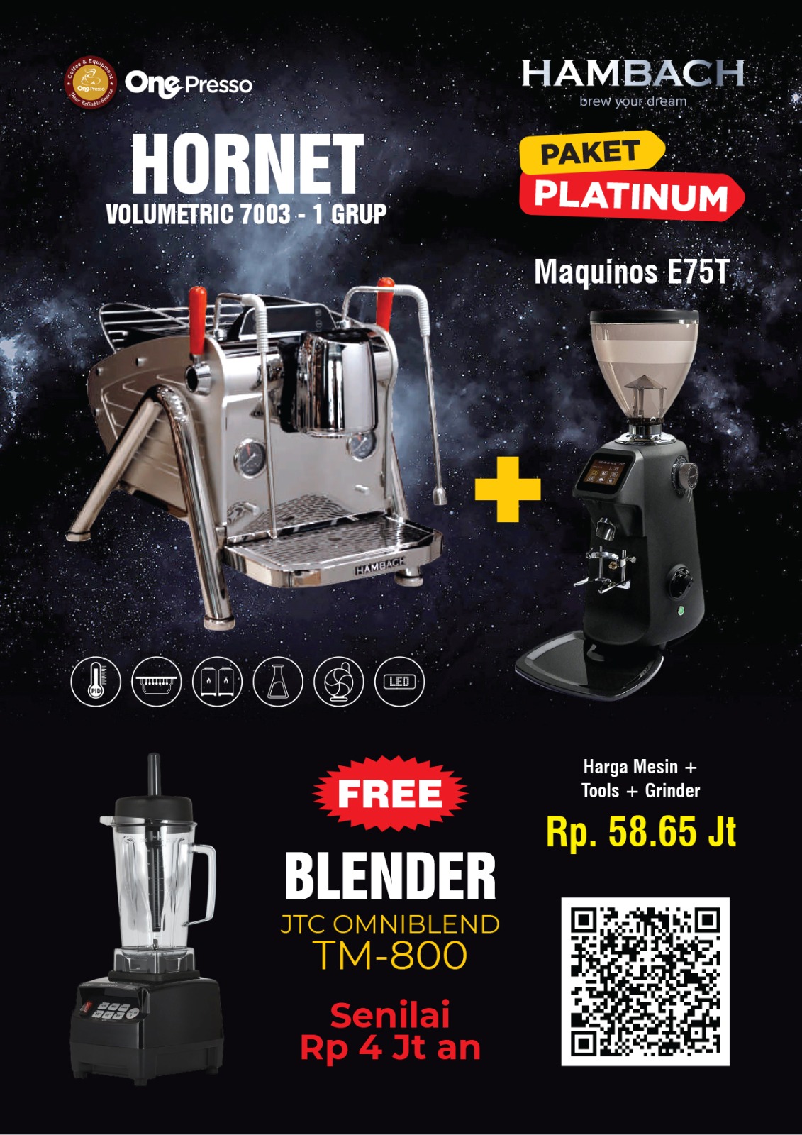 Paket Hambach Platinum ini meliputi mesin kopi dengan merk Hambach yang terkelompok 1 dan 2 grup head, dimana paket ini ada empat jenis mesin pilihan diantaranya : mesin kopi Tank 2G, Hornet 2G.