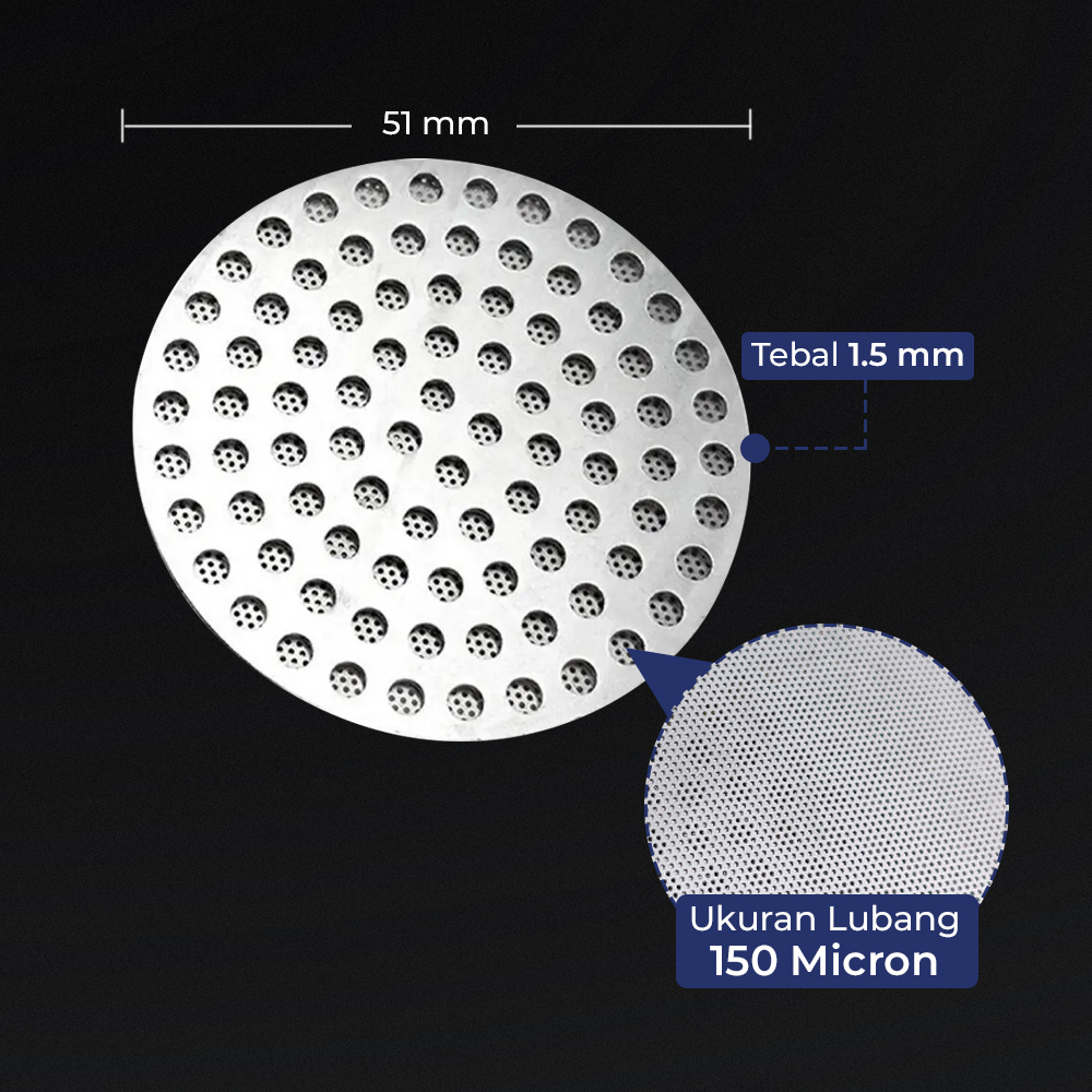 Dapatkan Puck Screen Portafilter Espresso Double Layer 150 Micron 51mm OTC – SUS304 – Silver di Toko Online Kami di Bawah ini :