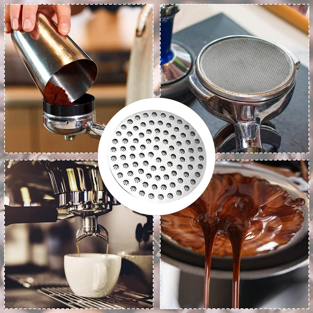 Saat membuat espresso, bubuk kopi yang ditampung portafilter biasanya menempel pada group head mesin kopi. Untuk mengatasinya, Anda bisa menggunakan puck screen espresso. Alat ini berfungsi sebagai penutup portafilter yang telah diisi bubuk kopi. Group head pada mesin kopi pun menjadi lebih bersih. Puck screen ini bisa dicuci dan digunakan berulang kali karena terbuat dari material stainless steel 304 yang anti karat.