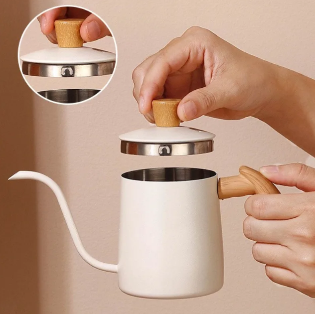 Teko kopi BORREY hadir dengan desain gooseneck yang presisi, memudahkan Anda mengontrol aliran air saat menyeduh kopi atau teh. Terbuat dari stainless steel 304 food grade yang aman dan tahan lama, dilengkapi gagang kayu ergonomis untuk kenyamanan serta keamanan saat menuang air panas. Ukurannya yang compact membuatnya mudah disimpan maupun dibawa bepergian, cocok digunakan di rumah maupun aktivitas outdoor.