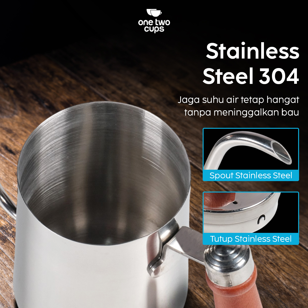 1 x One Two Cups Teko Kopi Leher Angsa Gooseneck Pour Over Kettle 600ml – STS304